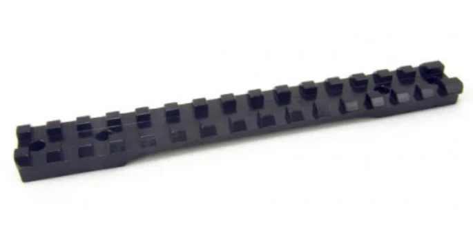 | Rusan gyármányú Picatinny sín, Marlin 336 /1894/1895 típusú fegyverekre.( B=82,6mm furattávolság ) Erősített, taktikai kivitel. Nagy szilárdságú acélból készült, precíziós CNC forgácsolással, fényes fekete felület kezeléssel. Megfelel a 1913 Mil-Spec Picatinny szabványnak, és mind Picatinny, mond pedig Weaver jellegű gyűrűkkel használható. Szilárd és hosszú távon is pontos platformot biztosít bármilyen céltávcső számára. | |