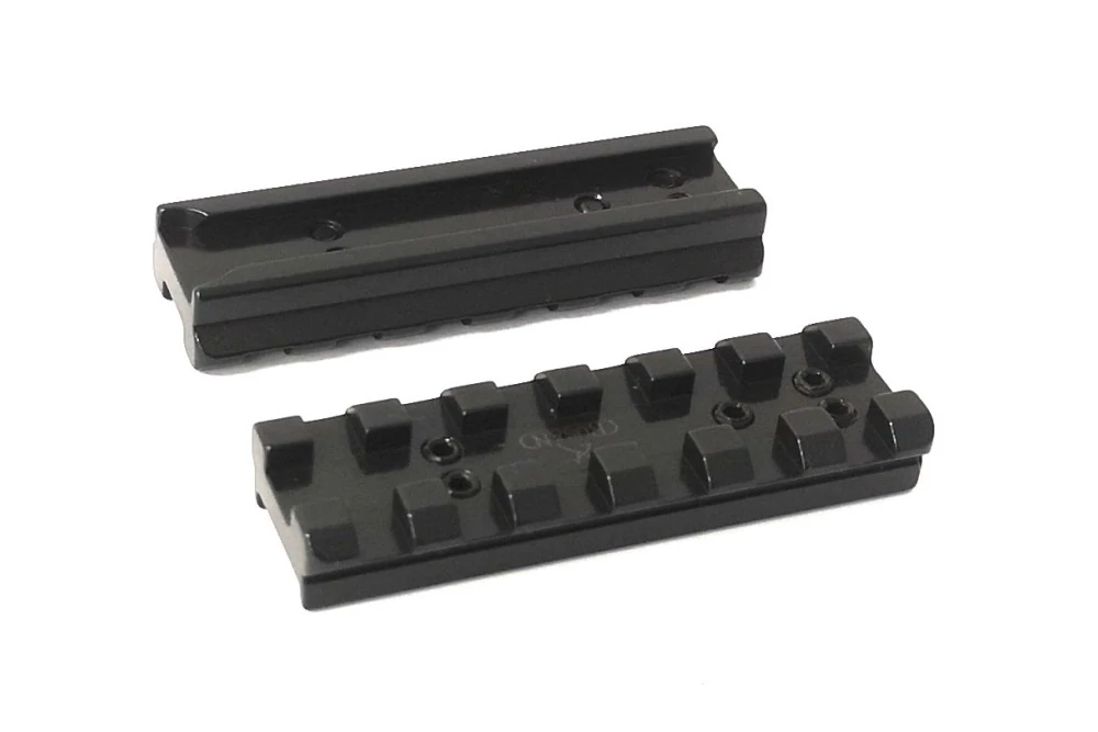| Rusan gyármányú Picatinny sín, Marlin 336 /1894/1895 típusú fegyverekre.( B=82,6mm furattávolság ) Erősített, taktikai kivitel. Nagy szilárdságú acélból készült, precíziós CNC forgácsolással, fényes fekete felület kezeléssel. Megfelel a 1913 Mil-Spec Picatinny szabványnak, és mind Picatinny, mond pedig Weaver jellegű gyűrűkkel használható. Szilárd és hosszú távon is pontos platformot biztosít bármilyen céltávcső számára. | |