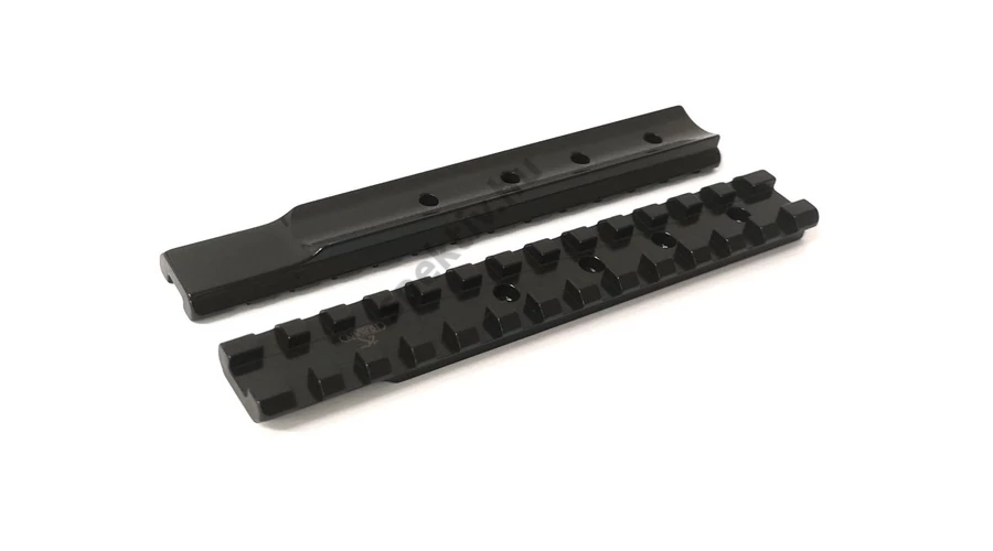 | Rusan gyármányú Picatinny sín, Mossberg Patriot fegyverekre.( Long Action B=119,4) Erősített, taktikai kivitel. Nagy szilárdságú acélból készült, precíziós CNC forgácsolással, fényes fekete felület kezeléssel. Megfelel a 1913 Mil-Spec Picatinny szabványnak, és mind Picatinny, mond pedig Weaver jellegű gyűrűkkel használható. Szilárd és hosszú távon is pontos platformot biztosít bármilyen céltávcső számára. | |