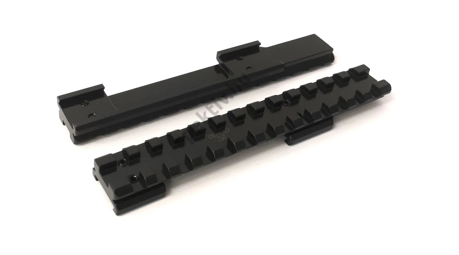 | Rusan gyármányú Picatinny sín, régi típusú ( csigatáras ) Steyr Mannlicher fegyverekre. B=88,0mm furattávolság. Erősített, taktikai kivitel. Nagy szilárdságú acélból készült, precíziós CNC forgácsolással, fényes fekete felület kezeléssel. Megfelel a 1913 Mil-Spec Picatinny szabványnak, és mind Picatinny, mond pedig Weaver jellegű gyűrűkkel használható. Szilárd és hosszú távon is pontos platformot biztosít bármilyen céltávcső számára. | |