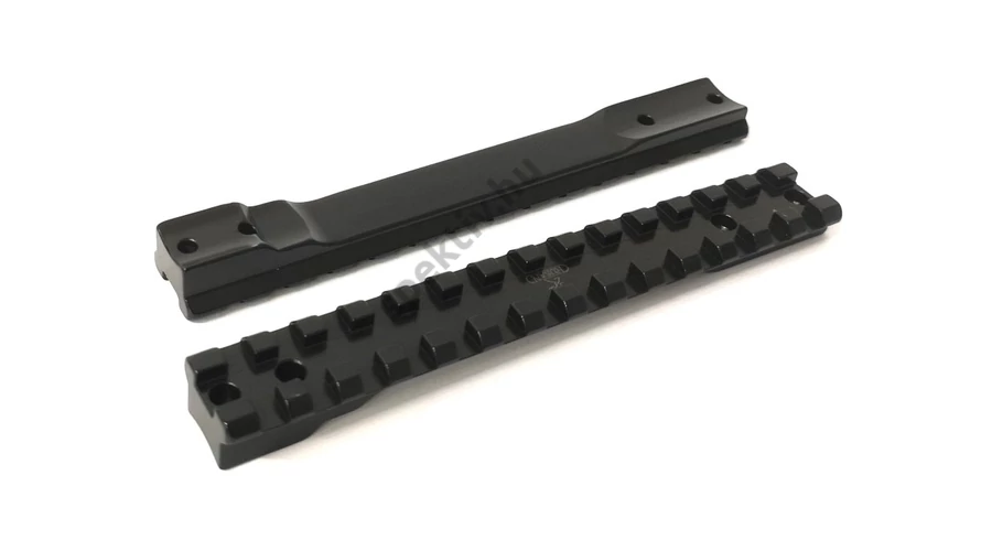 | Rusan gyármányú Picatinny sín, Zastava M48 típusú fegyverekre. Furattávolság B=105mm ) nélküli kivitel. Erősített, taktikai kivitel. Nagy szilárdságú acélból készült, precíziós CNC forgácsolással, fényes fekete felület kezeléssel. Megfelel a 1913 Mil-Spec Picatinny szabványnak, és mind Picatinny, mond pedig Weaver jellegű gyűrűkkel használható. Szilárd és hosszú távon is pontos platformot biztosít bármilyen céltávcső számára. | |